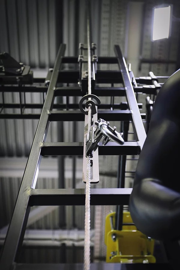 Основным элементом системы является стальной трос диаметром 8 мм с высокими показателями прочности. Захват ползункового типа свободно перемещается за работником во время его спуска или подъёма и не требует ручного регулирования, а в случае срыва автоматически срабатывает механизм блокировки.