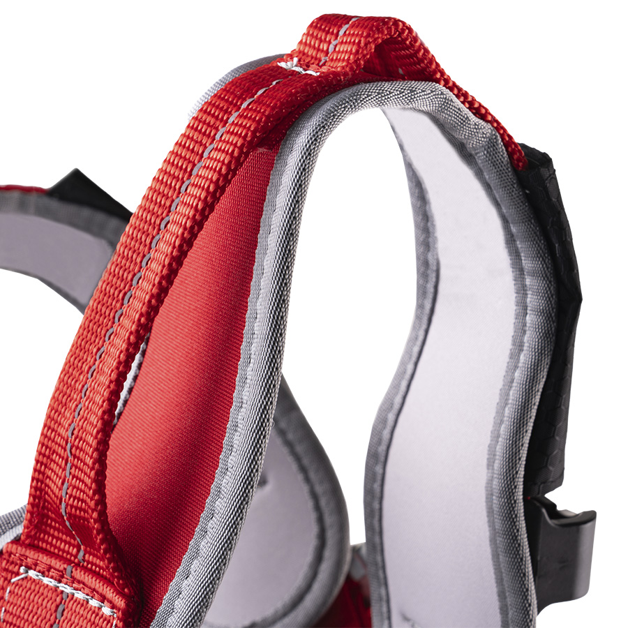 Привязь имеет индикатор рывка. Конструкция привязи обеспечивает максимальное распределение нагрузки на пояс, ножные ленты и плечевые лямки в момент остановки падения. Широкий кушак и накладки на плечевых и ножных обхватах, имеющие слой из 3D сетки, которая предназначена для равномерного распределения движения воздуха, позволяют длительное время находиться в привязи в безопорном пространстве