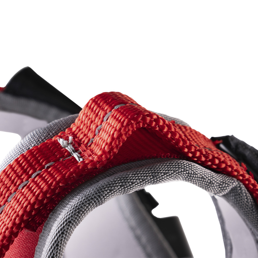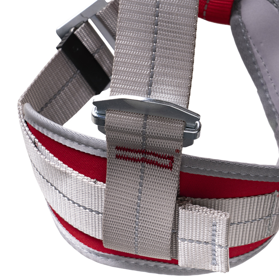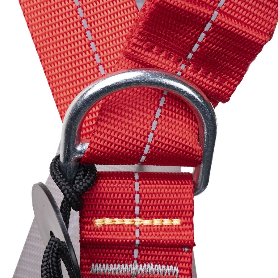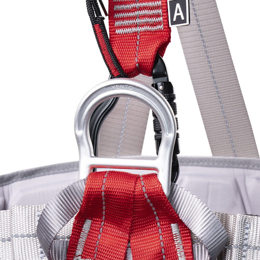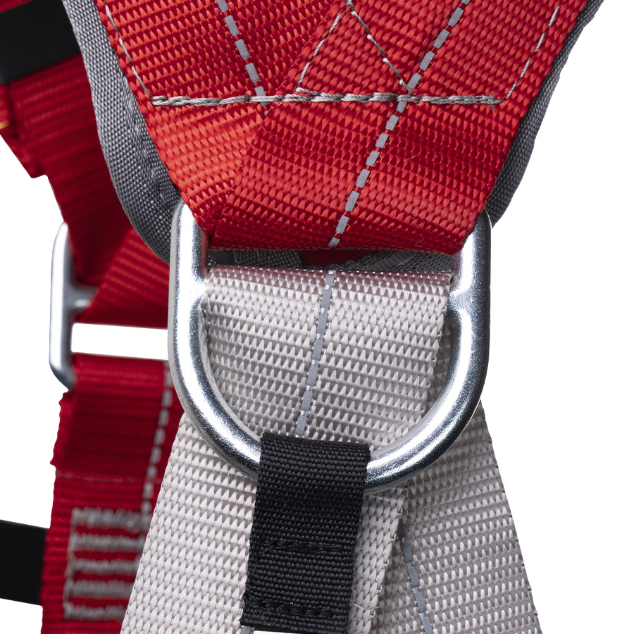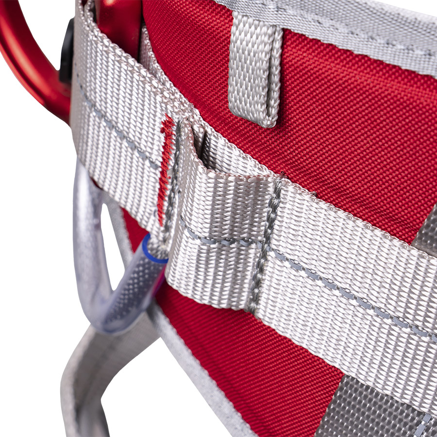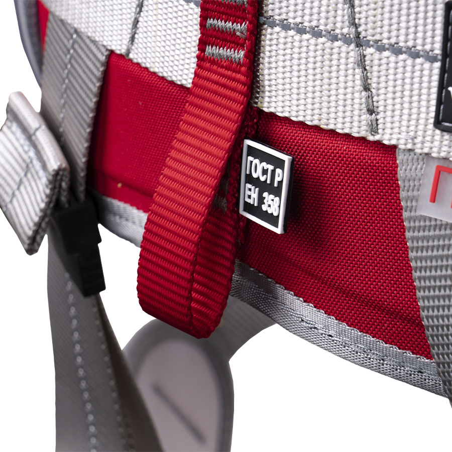 Имеются 2 страховочные точки: на спине и на груди, а также 4 точки для удержания и позиционирования: две боковые, одна сзади на поясе и одна брюшная. Последняя удобна для использования в системах канатного доступа