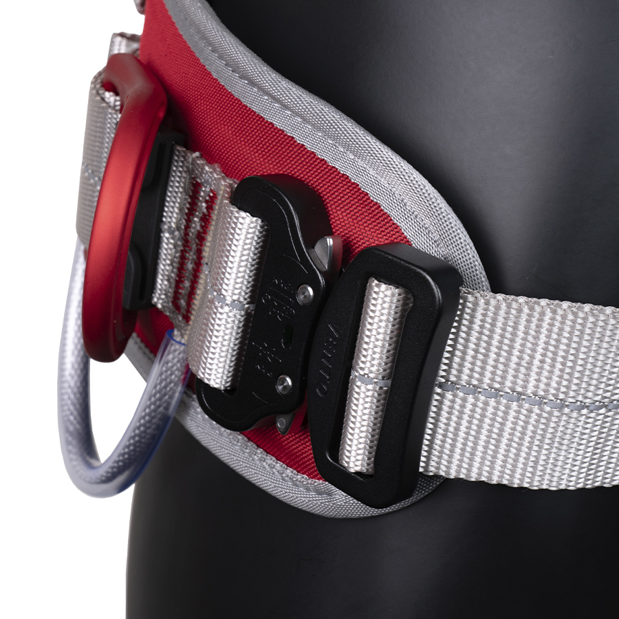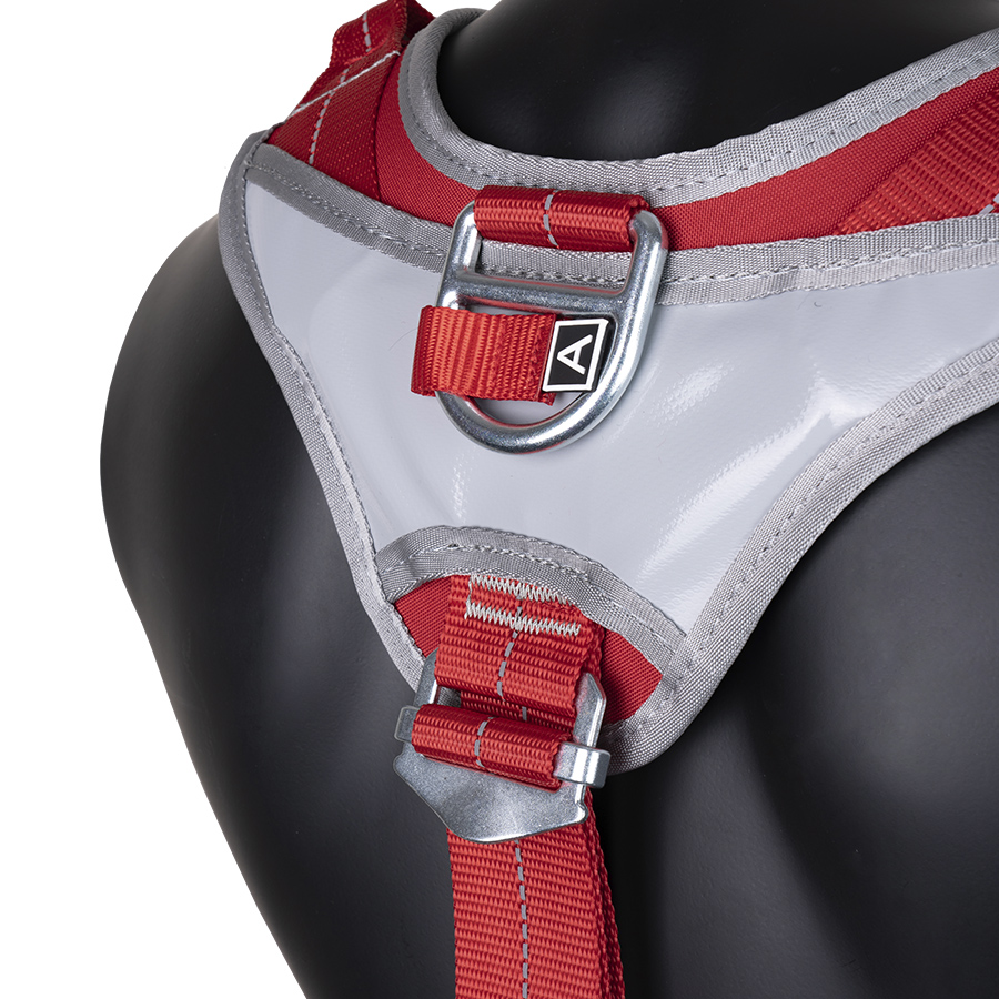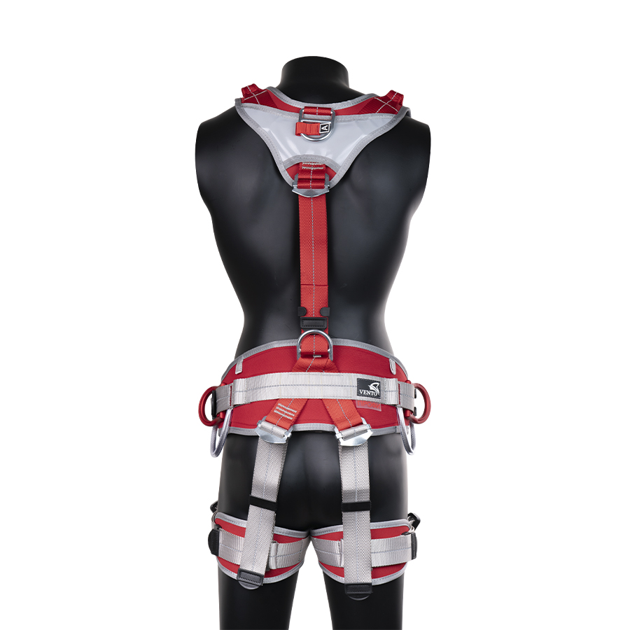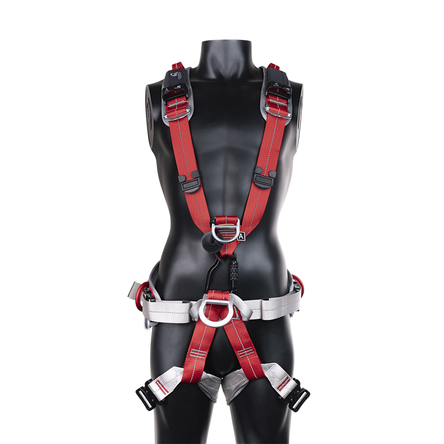 Имеются 2 страховочные точки: на спине и на груди, а также 4 точки для удержания и позиционирования: две боковые, одна сзади на поясе и одна брюшная. Последняя удобна для использования в системах канатного доступа