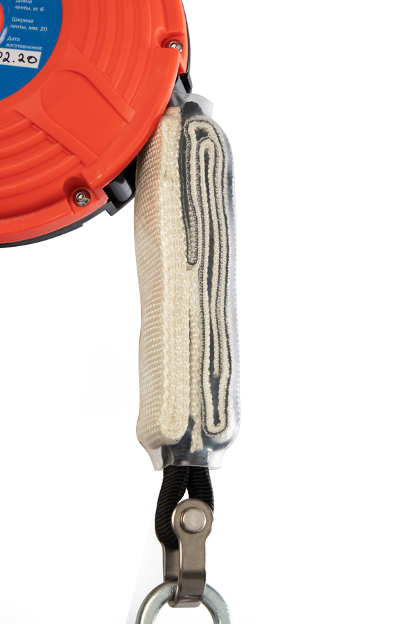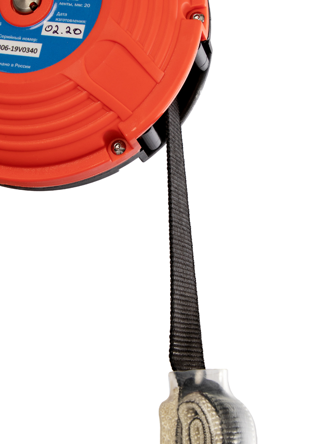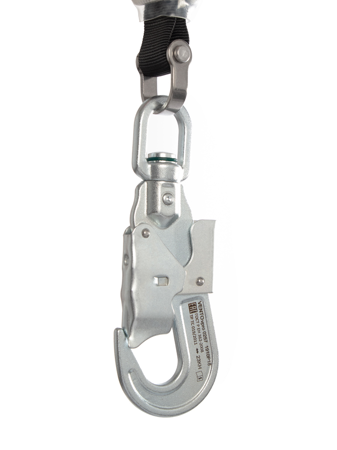 Карабин на конце ленты имеет вертлюг для предотвращения перекручивания стропы.