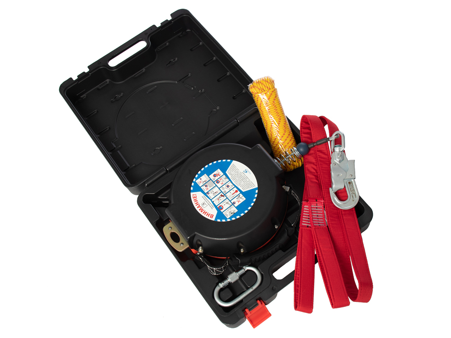 При резком увеличении скорости вытягивания троса (при срыве) автоматически срабатывает тормозной механизм, прекращающий падение.