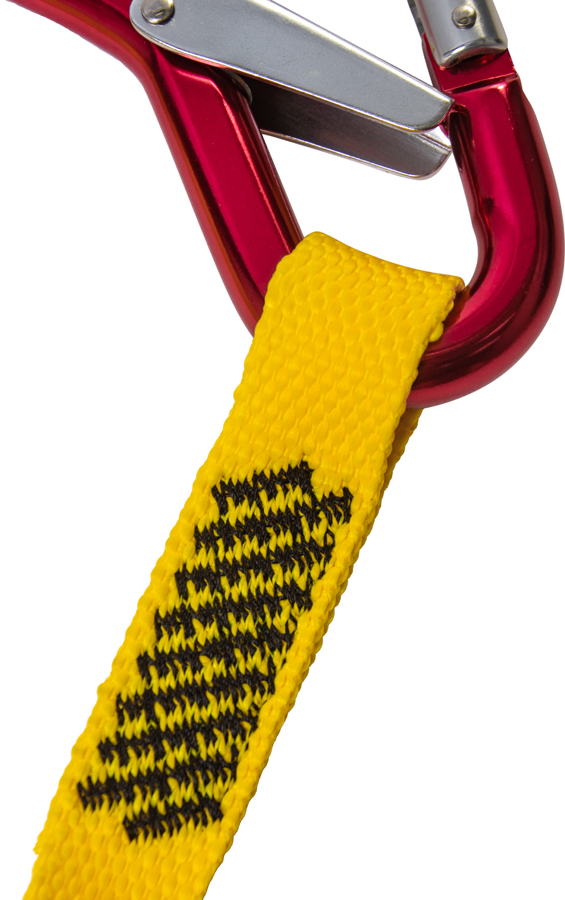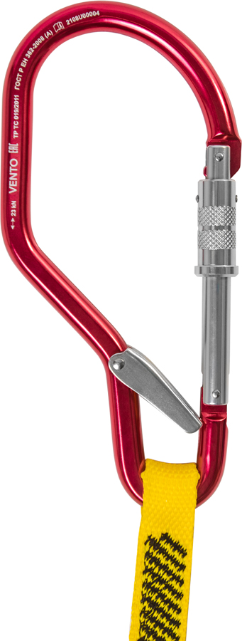 Использование легких алюминиевых карабинов с раскрытием более 60 мм существенно снижают массу изделия, делая переноску более удобной, а также обеспечивают возможность крепления к массивным структурным анкерам.