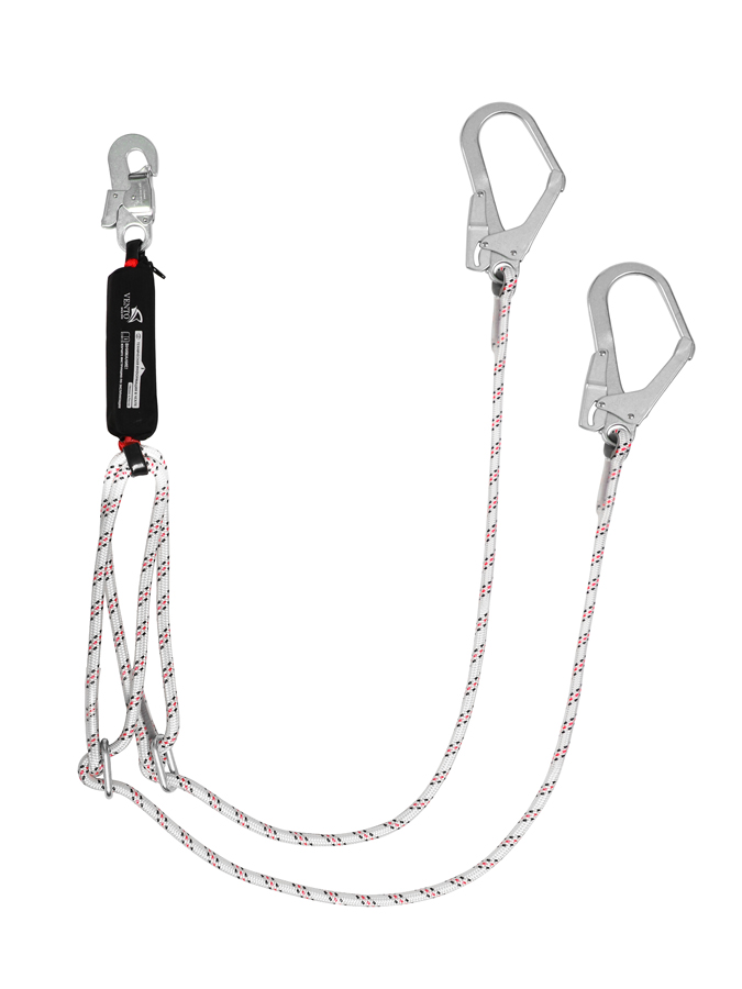Двухплечевая конструкция удобна при перемещении по металлоконструкциям для обеспечения беспрерывной страховки. Регулировка позволяет изменять длину стропа в зависимости от расстояния между анкерной точкой и опасной зоной.