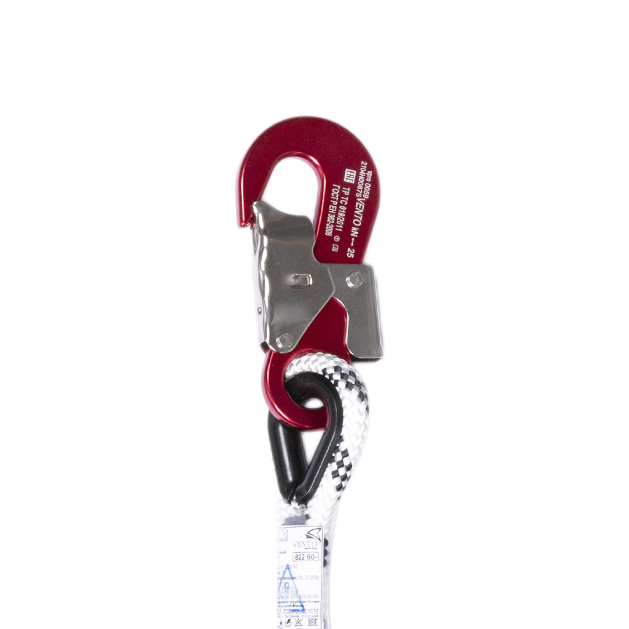 При подключении в страховочную систему требует обязательного наличия амортизатора.