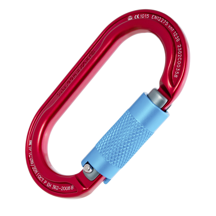 Овальная форма позволяет равномерно нагружать карабин и удобно поворачивать при соединении с другими составляющими страховочной цепи. Карабин применяют, когда важно отсутствие перекосов или заклинивания.