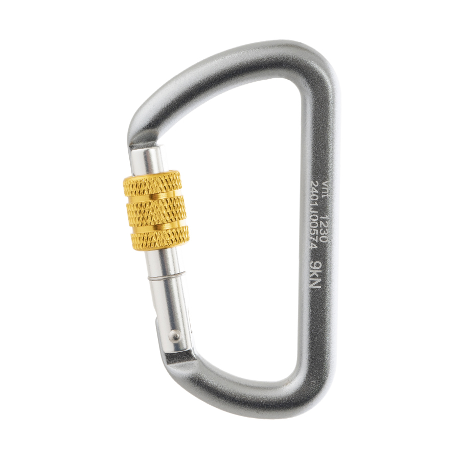 Вспомогательный карабин с резьбовой муфтой, препятствующей случайному открытию карабина. Предназначен для присоединения вспомогательного оборудования.