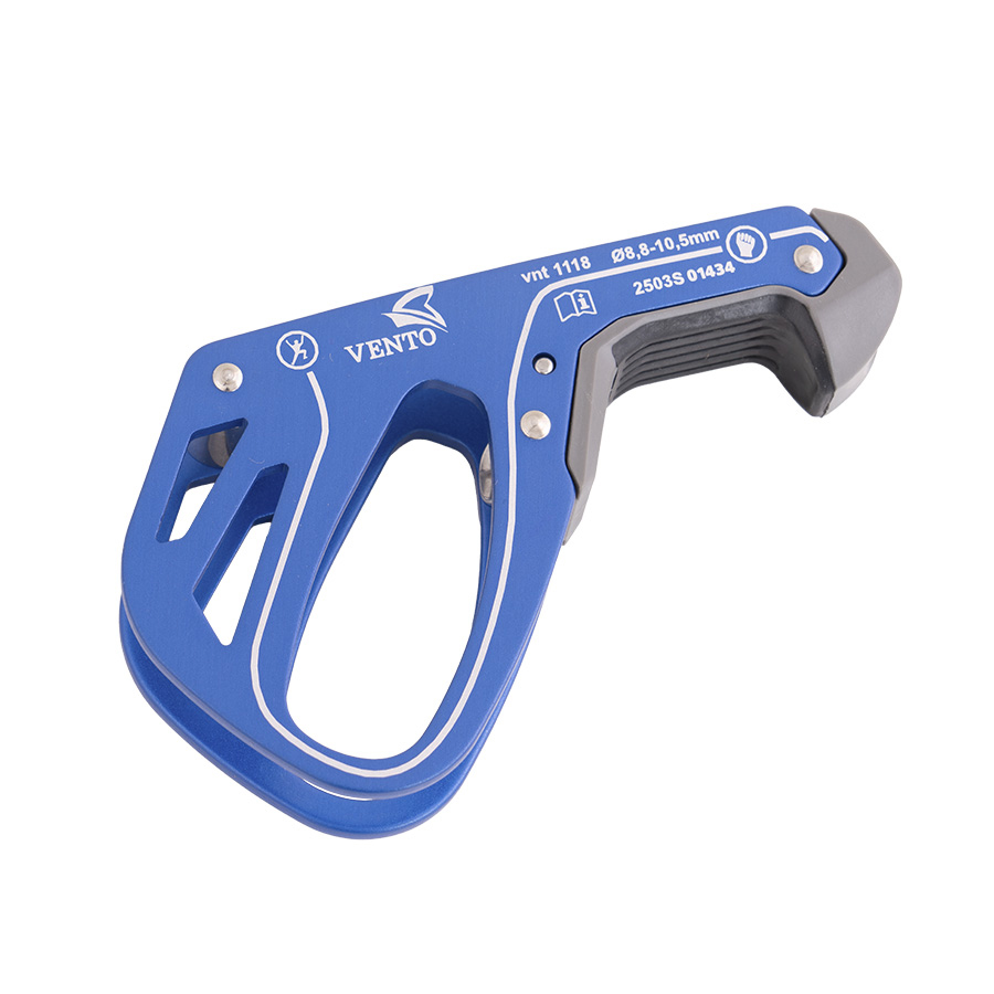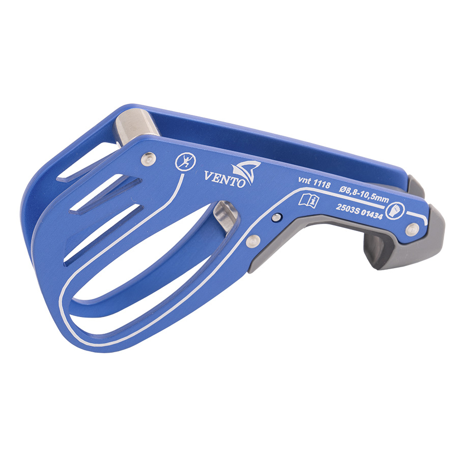 Устройство основано на принципах работы шайбы Штихта, однако блокирует веревку при срыве.