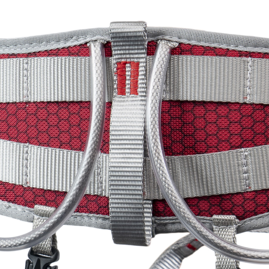 Две страховочные петли из Dyneema позволяют одновременно применять большое количество снаряжения (усы, оттяжки, снаряжение для ИТО, страховочную веревку и пр.) Кольца складываются одно в другое.