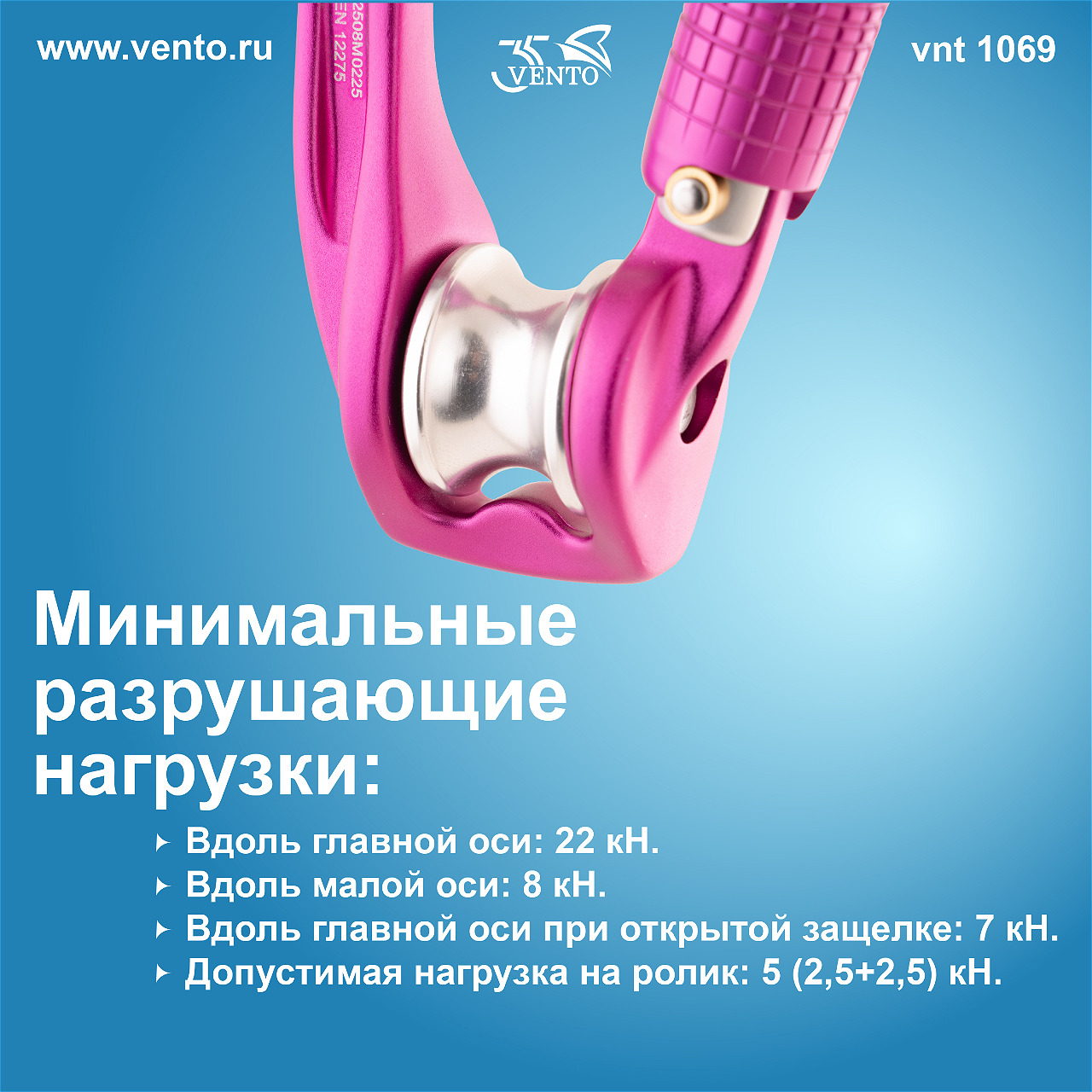 Карабин VENTO Роллер с байонетной муфтой - это практичное решение для тех, кто регулярно собирает полиспасты, работает с оттяжками или с перегибами верёвки.